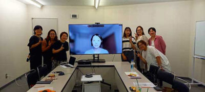 名古屋市内の集合会場とオンラインでつないで記念撮影